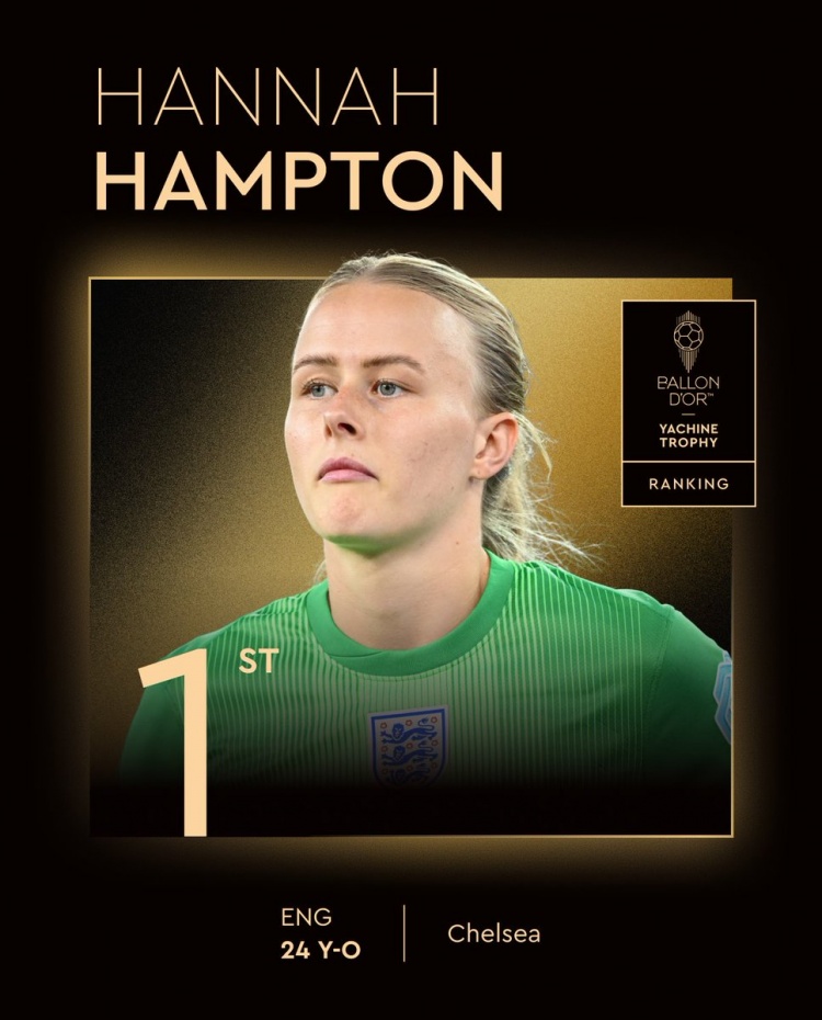 9月23日讯 切尔西门将汉娜-汉普顿在荣获首届女足雅辛奖后发表了获奖感言,她感谢了家人、教练和球迷的支持。