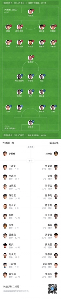 09月14日讯 北京时间19点35分,中超第24轮,天津津门虎vs武汉三镇,赛前双方首发公布。【此役津门虎和三镇均派上四外援出战,19岁小将王康首次代表三镇在中超先发。】