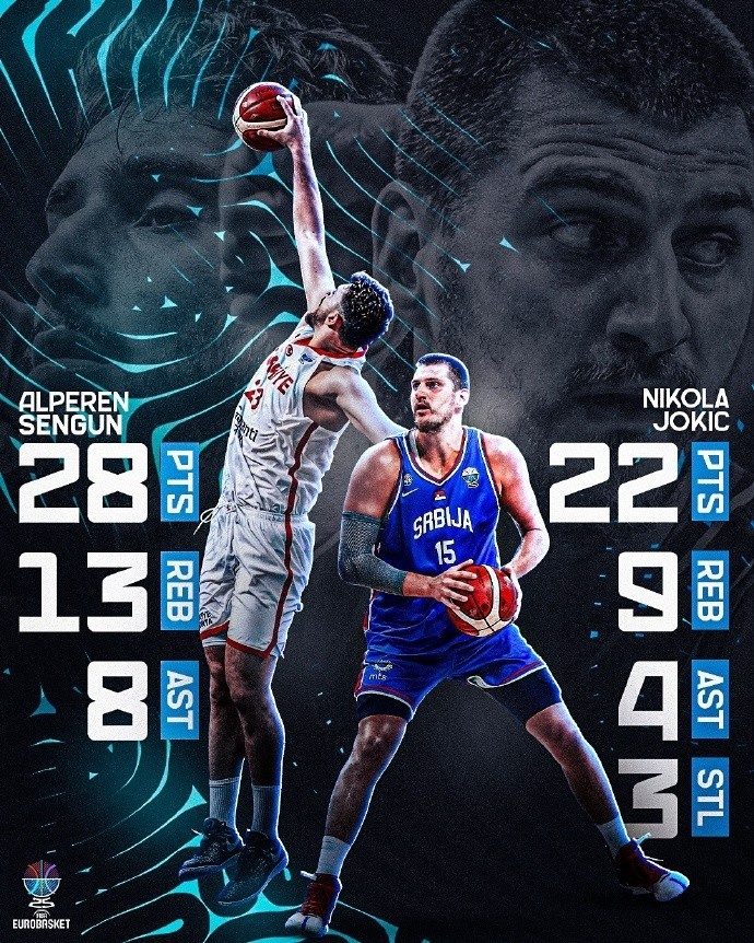 在欧锦赛乏味的小组赛征程中,今天凌晨终于又出现了一场拳拳到肉的比赛:此前都4场全胜的塞尔维亚和土耳其在小组赛收官战相遇,而约基奇和申京的直接对位更是成为了比赛的最大看点。